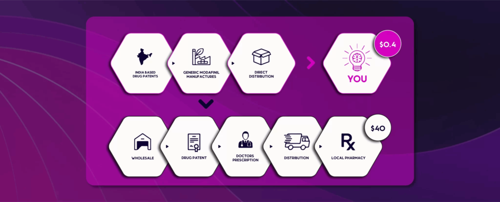 Our generic modafinil and armodafinil prices are significantly lower than the market average because they are based on the cost of production in India.