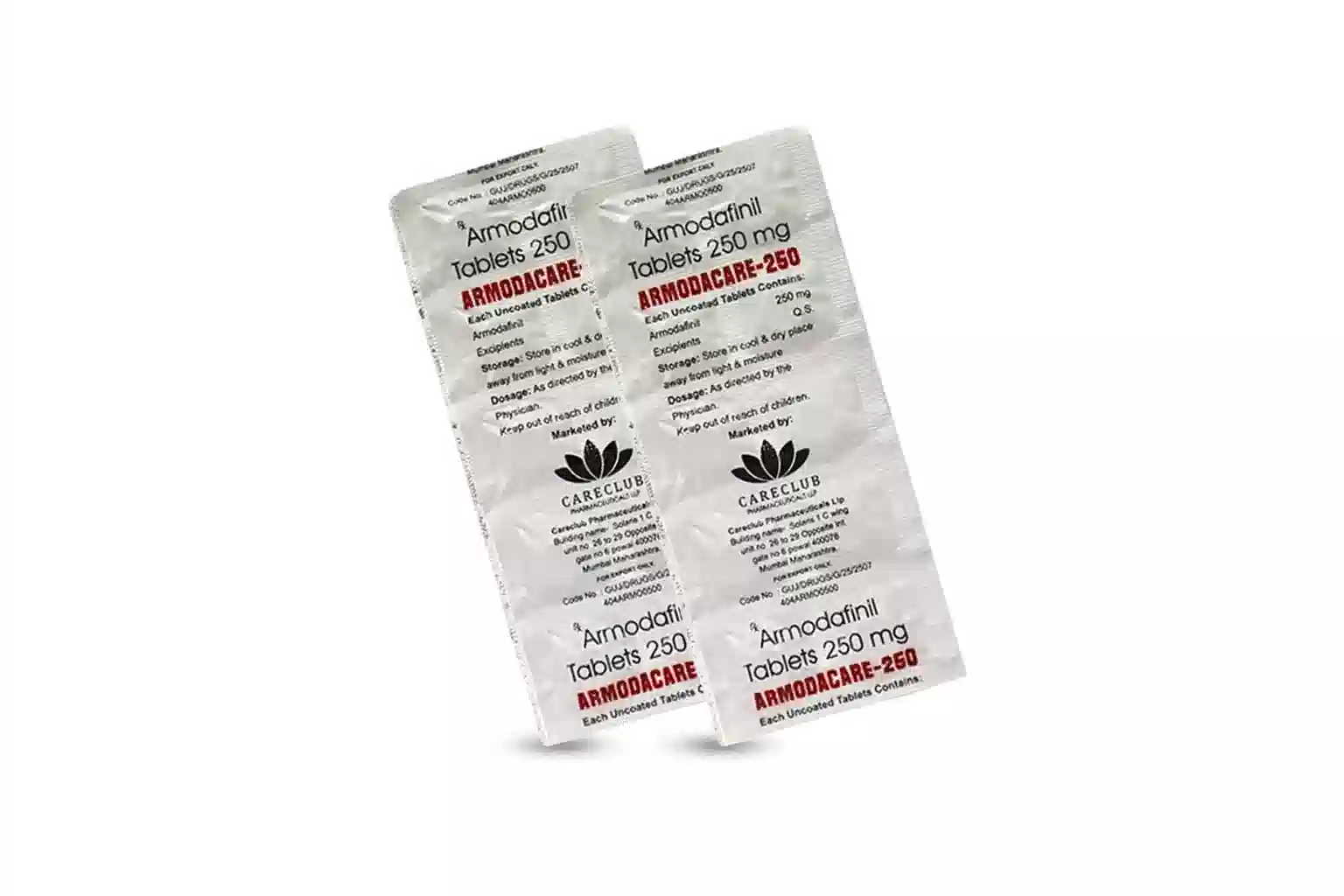 Armodacare 250 mg treats narcolepsy and obstructive sleep apnea.