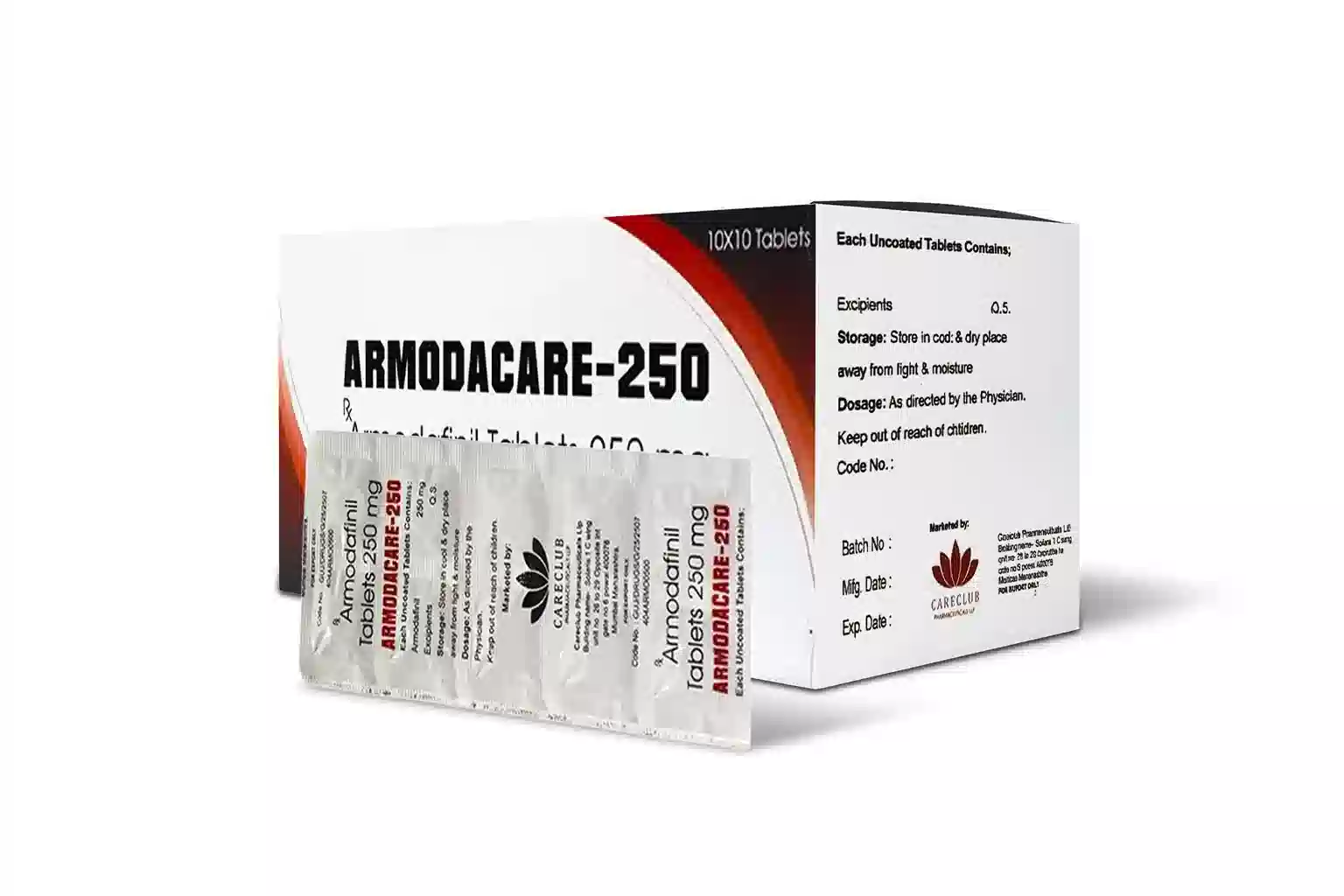 Armodacare 250 mg raises dopamine in the brain and affects other brain chemicals to boost alertness and keep you awake.