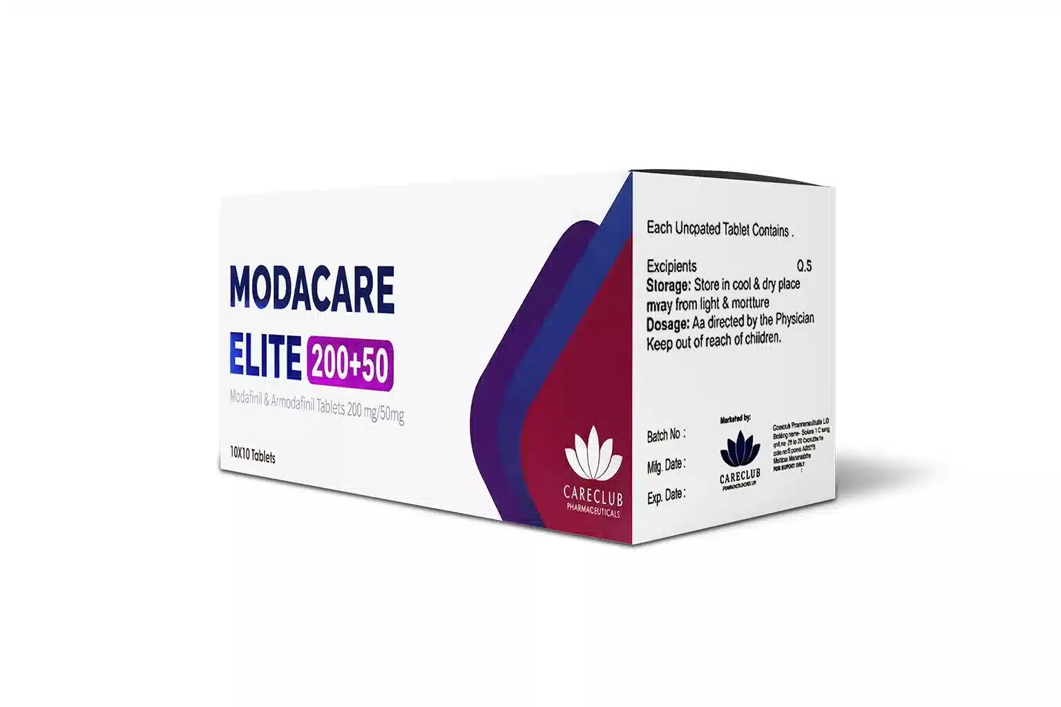Modacare elite 250 mg is a combination drug known to be as CNS Stimulant that may contains Modafinil as well as Armodafinil an active ingredient and is used to treat excessive sleepiness associated with Narcolepsy, Obstructive sleep Apnea (OSA), and shift-work disorder (SWD). It works by awakening the release of neurotransmitters like histamine, dopamine, norepinephrine etc and this combination drug is used to enhance the cognitive function and improves alertness.